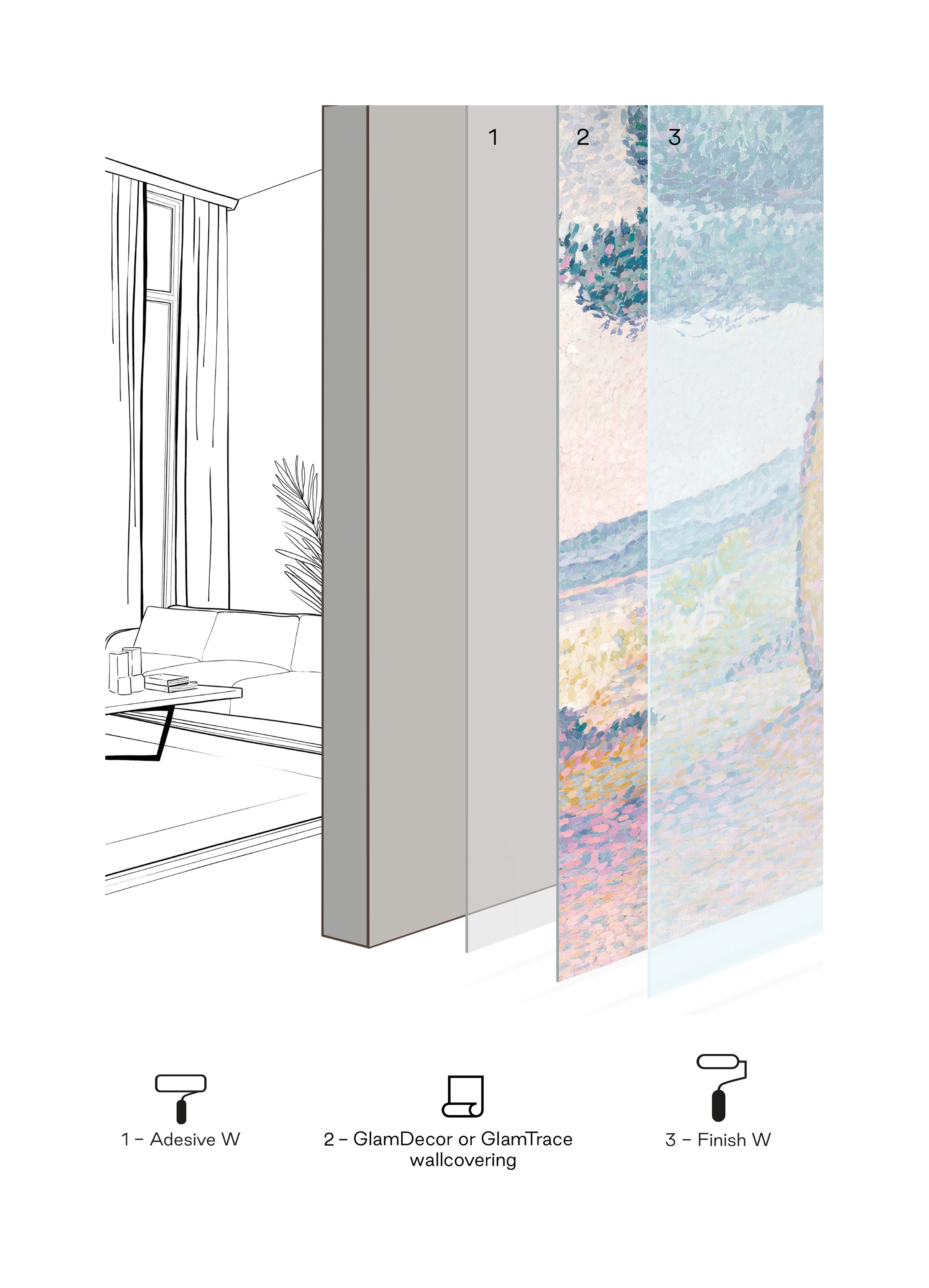 Jedná se o ideální tapetu pro jednoduché a rychlé pokrytí stěn, stropů i dveří. Tapeta je složena z vrstvy netkané textilie potažené PVC a nabízí výborné vlastnosti, pokud jde o kvalitu, trvanlivost, estetiku a hygienu. Vyrábí se za použití ekologicky šetrných prodyšných barev bez zápachu. Tapeta odolává většině chemických čistících prostředků. Tapeta GlamDecor má jemnou povrchovou úpravu, která zvýrazňuje texturu motivu. Tapeta je odolná a může být použit ve veřejných prostorech a v prostředí náchylných k poškození. Vynikající světlostálost výrazně snižuje riziko vyblednutí tiskových barev, barvy tapety zůstanou zářivé po dlouhou dobu.