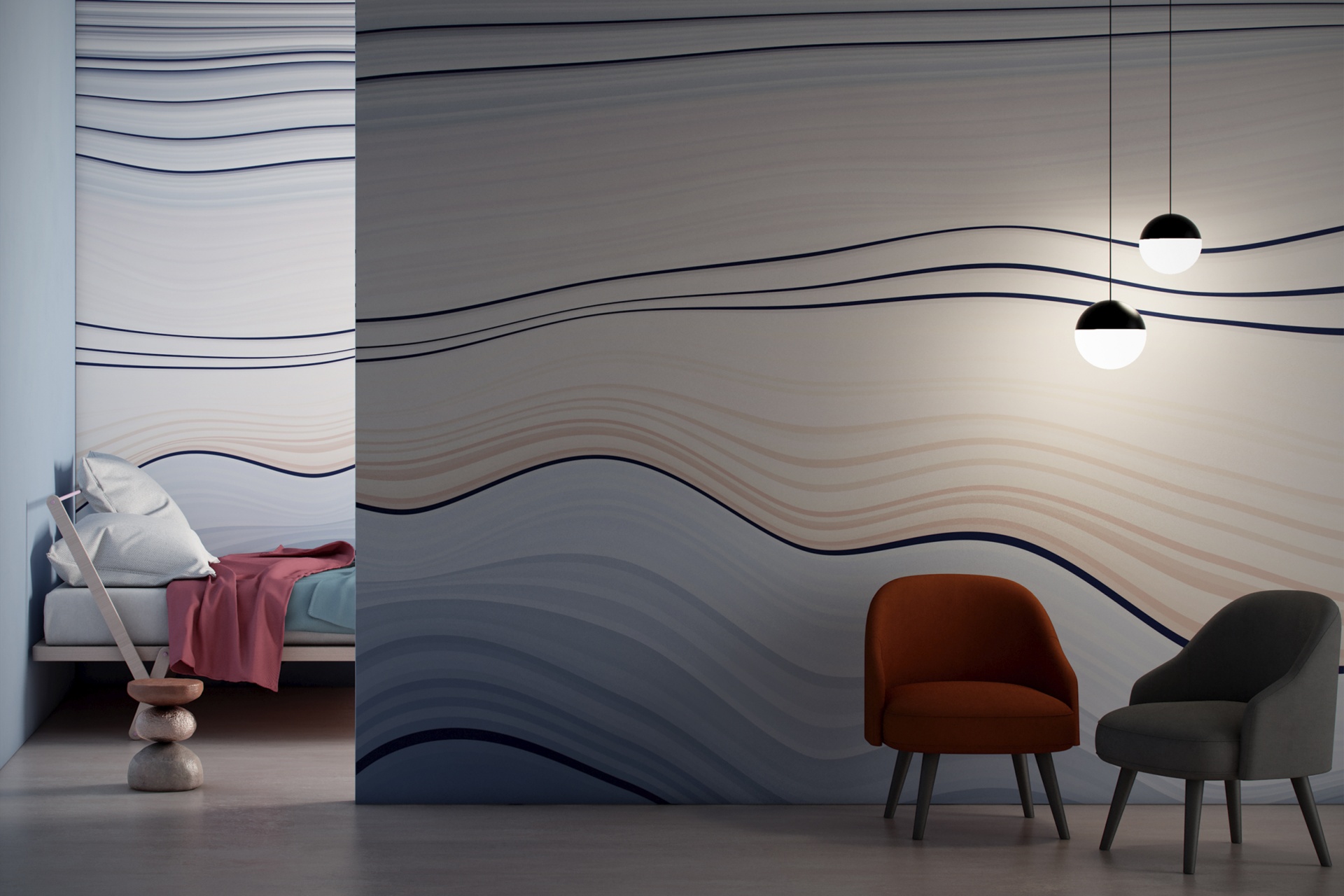 Reliéfní tapeta, která evokuje ruční papír a dodává kresbě hloubku. Tenký matný texturovaný povrch vytváří jemné chromatické efekty.