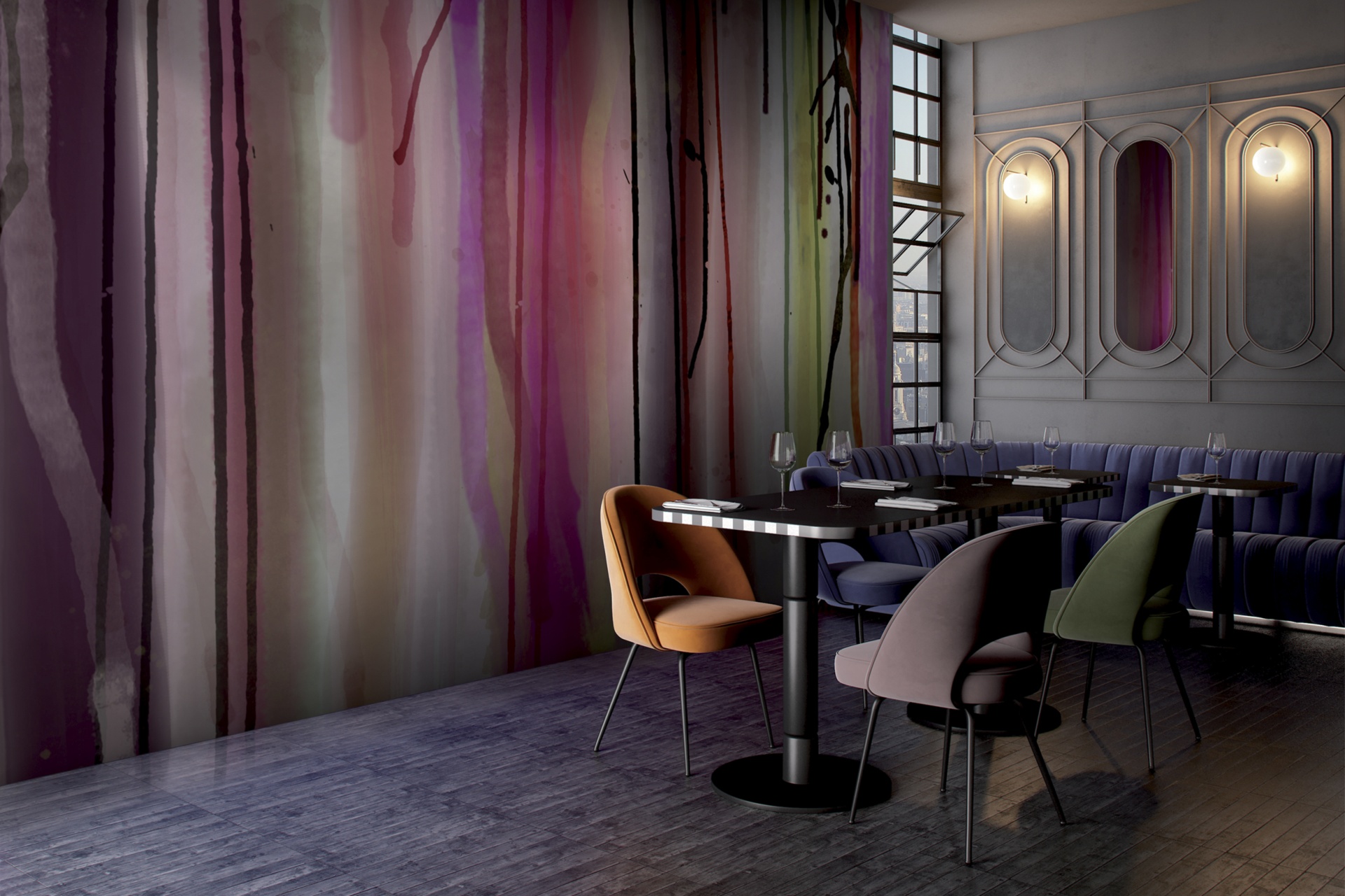 Tapeta se vyrábí na míru. Po výběru motivu, materiálu a definování rozměru plochy vám pošleme grafický návrh a cenovou nabídku.